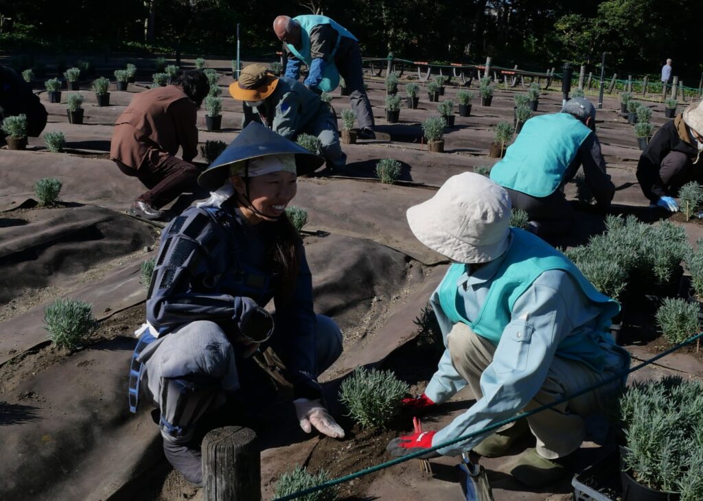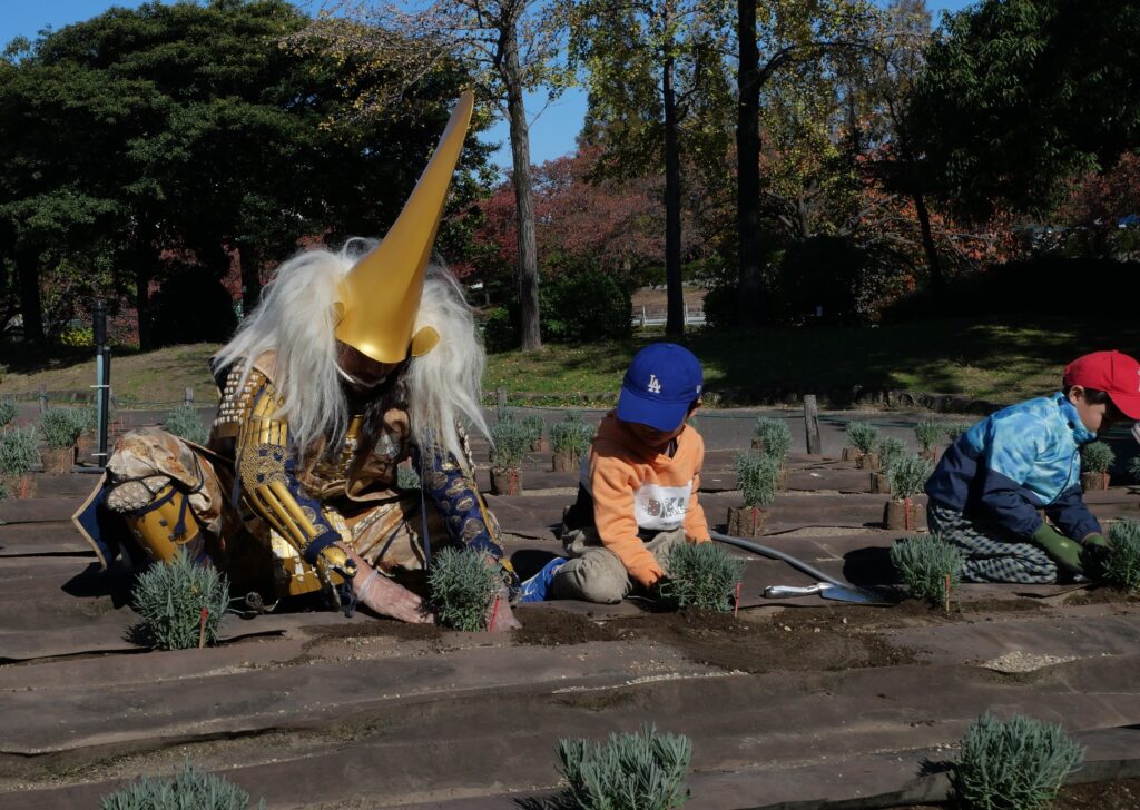 なごや花の環ネットでは、昨年度11月ラベンダー園に「花の環フレンド」の皆さまと、「名古屋おもてなし武将隊®」の前田利家公、なつさんとラベンダーの苗を植えるイベントを開催しました。 皆さんと植えた苗は元気に成長中ですよ!!